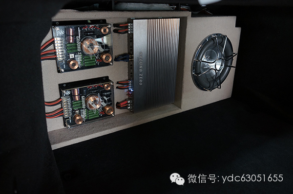 尾箱左边安装零点信号处理器,它既可输入2路高质量的RCA非平衡低电平模拟信号(这些信号通常来自为汽车音响专业改装而设计的高端主机),它也可输入6路高电平模拟信号(这些信号通常来自原车主机以用于直接推动扬声器),它更可理所当然地输入1路光纤数字信号,解码后生成2路或以上的低电平模拟信号。功能强大的芯片和专门开发的软件,以失真最小的方式,将所输入的高电平模拟信号转换为低电平模拟信号,直接用电脑对上述所有低电平模拟信号进行各种调节处理,获得最佳的音质效果。! \7 J, k$ w) T: v! o3 w