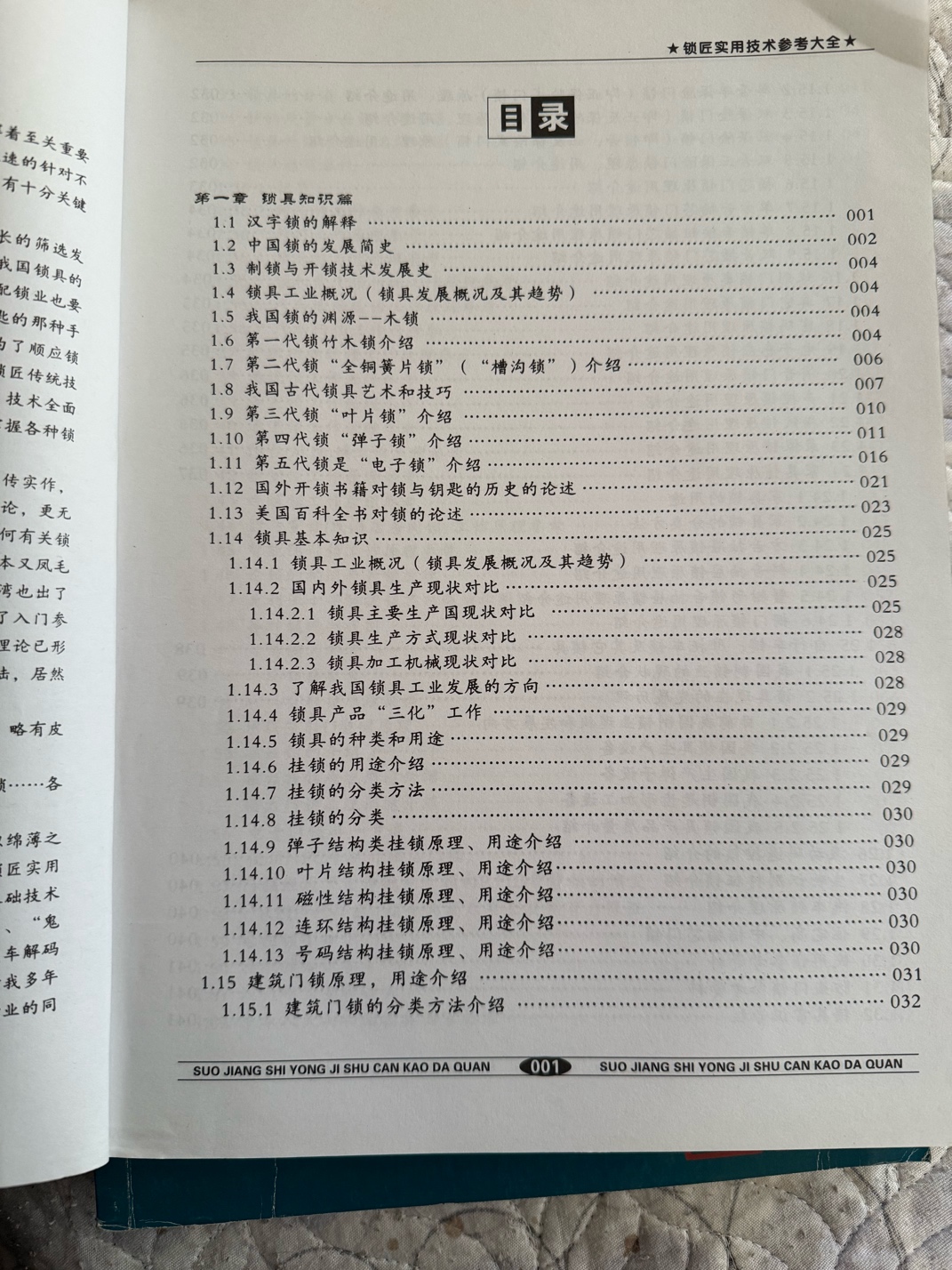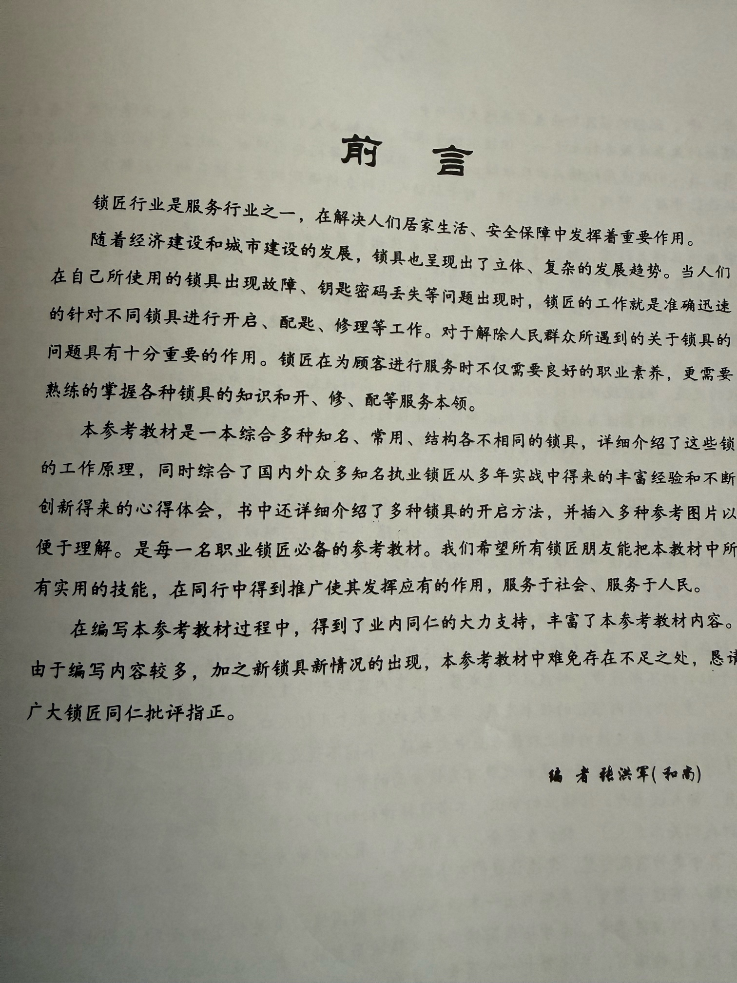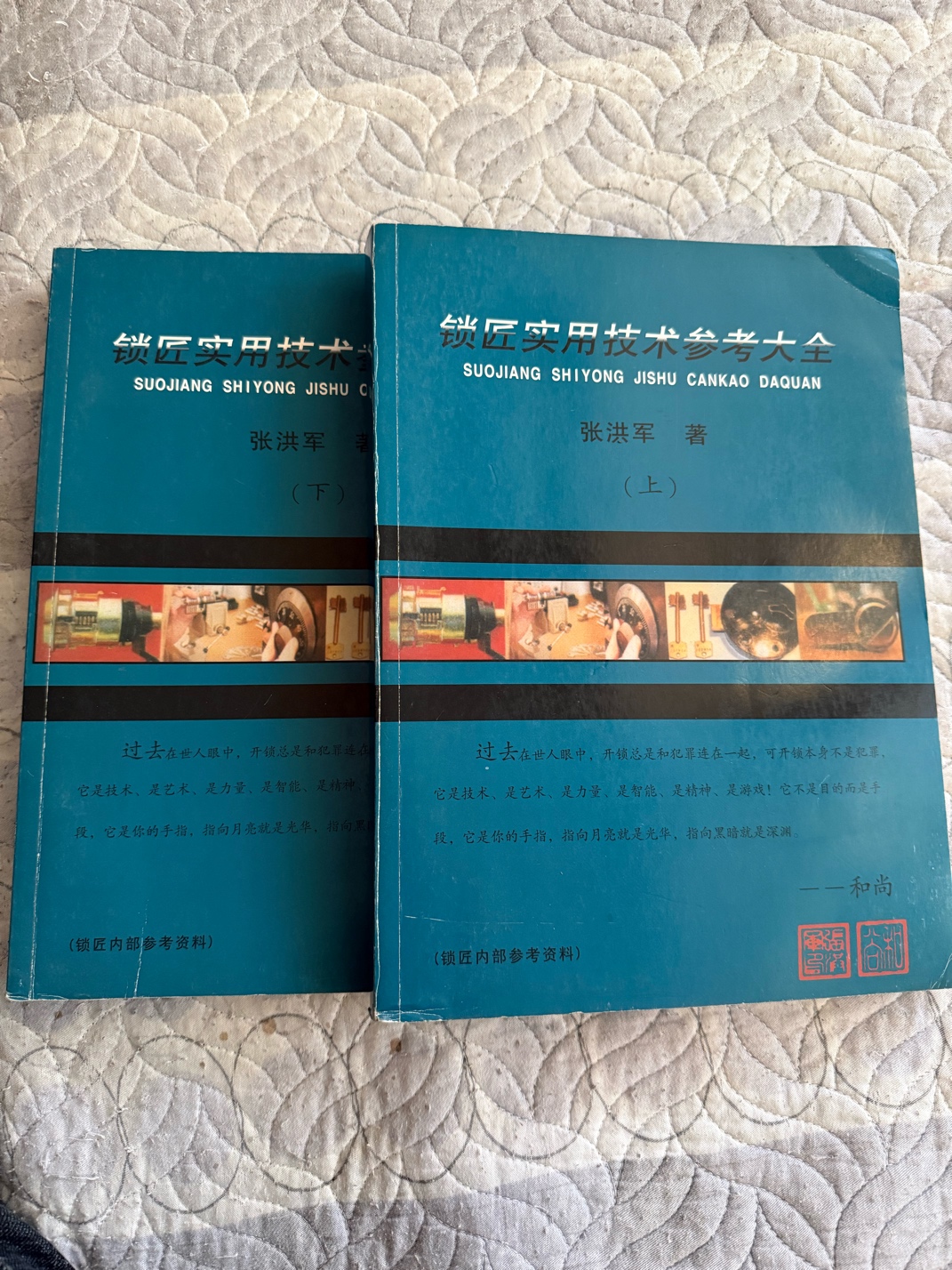 锁匠实用技术参考大全,上下两册,700多页,内容包括民用锁,汽车锁,保险柜锁开启和工具选择制作等内容,专业锁匠必备的参考资料。160出给有缘人!<br><br>8 x0 L- q* I7 l+ R1 t2 c