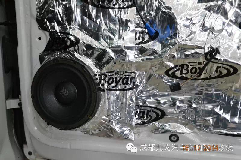 车门隔音,用的博亚的止振王,车门钣金上面做内外2层,增强车门厚度,降低车门共振。让汽车音响低频很好发挥。