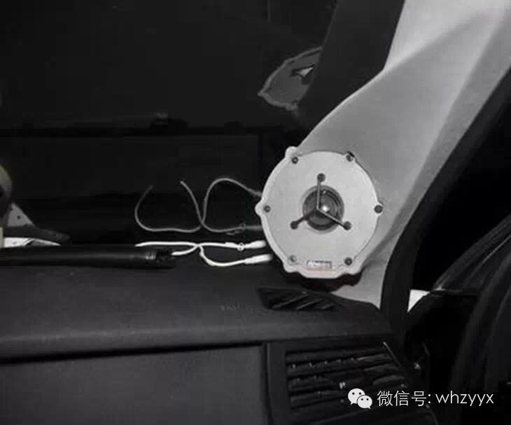( h% U9 e& _4 L! |2 eA柱(改装后),磨完灰之后,选择一层跟原车天花颜色相似的绒布包络起来,高音虽然庞大,但是技师把握定外角度非常好,即不影响驾者视线,也不显的浮肿,反而两边有一种对称美!