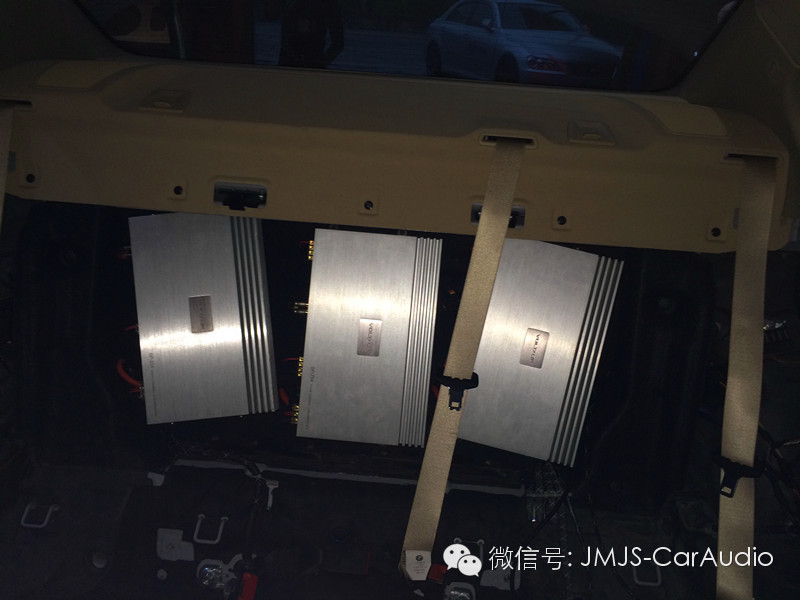 闪电ST-754四路功放×3台功放安装在尾箱后方,不影响使用的同时又充分的节省了尾箱的可使用空间。 尾箱工艺通过灯光的陪衬下更加炫丽~