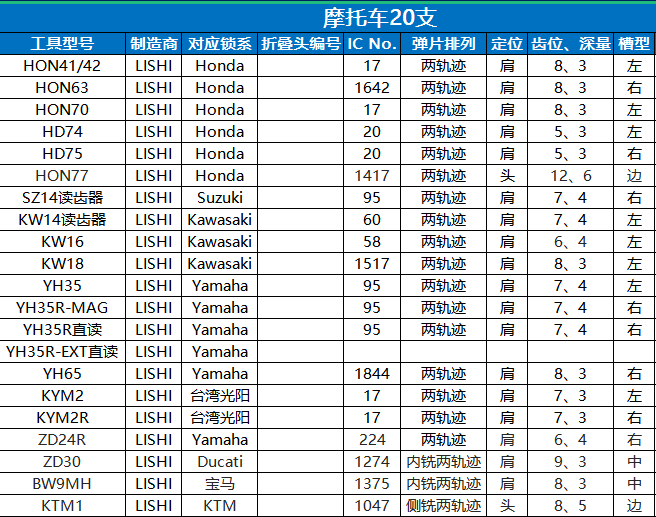以下是摩托车的李氏专用工具,其中也包含内铣和外铣工具,主要有本田雅马哈川崎宝马杜卡迪等型号。
