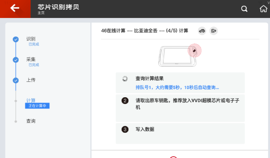 正常情况下使用Xhorse平板电脑做钥匙全丢: 注:此种方法适用于21年前非超级混动的车辆,操作之前需要在遥控生成菜单中使用 智能卡子机生成一个全丢采集器。 生成采集器后按压后备箱按键智能卡子机上的灯会不断闪烁 使用采集器上车采集信息方法如下: 摁下子机任意按键,子机指示灯开始有规律闪烁,提示开始上车采集数据。车上采集数据时应注意左手拿着子机右手摁点火,左右手保持15-20公分的距离。 注意:此时采集子机不能靠近感应区(例如启动按键、钥匙学习区等),推荐放在主驾座位或膝盖上(大部分车匀速【2秒1次】开关4次启动开关(少数车1次),采集器灯熄灭,采集成功)。 完成数据采集后开始进比亚迪全丢计算,进入芯片拷贝功能—46在线计算—比亚迪全丢(建议此时连接质量比较好的网络,如手机热点网络),注意比亚迪全丢功能需要进行实名认证后才能使用。 将采集好数据的智能卡子机放入平板电脑的识别区,点击确认 平板识别成功后系统提示选择采集方式 此时开始使用平板电脑进行数据采集,将子机生成的采集器贴近感应区(远程采集平板电脑可以不接近感应区),按压启动按钮采集8组数据。 等到8组数据采集完成后系统会再次提示将原车钥匙(此时指的是子机采集器)再次放入平板电脑的识别区。 系统进行验证后,联网计算数据 数据计算成功后系统提示放入VVDI超模芯片或者电子子机(此时可以将智能卡采集器继续放入平板电脑识读区域)。 等待系统提示:拷贝成功 拷贝生成成功之后,此时子机能正常智能或应急启动! 如果遇到钥匙生成后不能应急启动,则需要读取生成钥匙的P0页面的ID,如果ID的第七个位置为0,则把0改为7尝试启动,如果不能启动则再改为B或者E即可。
