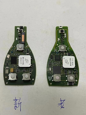 10年之前的奔驰智能常见的钥匙为06 08版本居多现有的 FBS3智能又不兼容,所以之前开发出了专门针对于10年之前的08版本专用智能钥匙。这种钥匙解决了10年之前06 08奔驰匹配智能钥匙的需求但是有一小部分的车辆在使用此钥匙时仪表上会显示:钥匙 电池电量过低,请更换电池的提示。 出现这种提示并非是遥控器中的电池电量低而是钥匙与车辆上的某些对话协议不匹配,这种情况虽然不影响车辆的使用,但是挑剔的顾客就会有意见。 现在这种08版本的钥匙改进了,使用新版本的钥匙再生成钥匙后在电池电量正常的情况下的那些比较特殊的奔驰类型也不会再提示需要更换电池了。 之前的老版本仍然可以正常使用,如果遇到这种特殊的车辆选用新版本的钥匙即可。新老板本的钥匙电路板区分如下: 新的专用08版本钥匙同样可以切换频率与反复擦空重复使用。