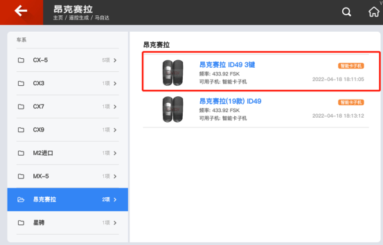 如果客户原车钥匙的芯片为长方形型,则需要将XHORSE的智能卡子机生成昂科塞拉 ID 49的类型