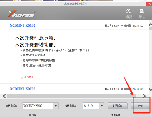 打开综合升级工具(VVDI2软件中自带综合升级工具)