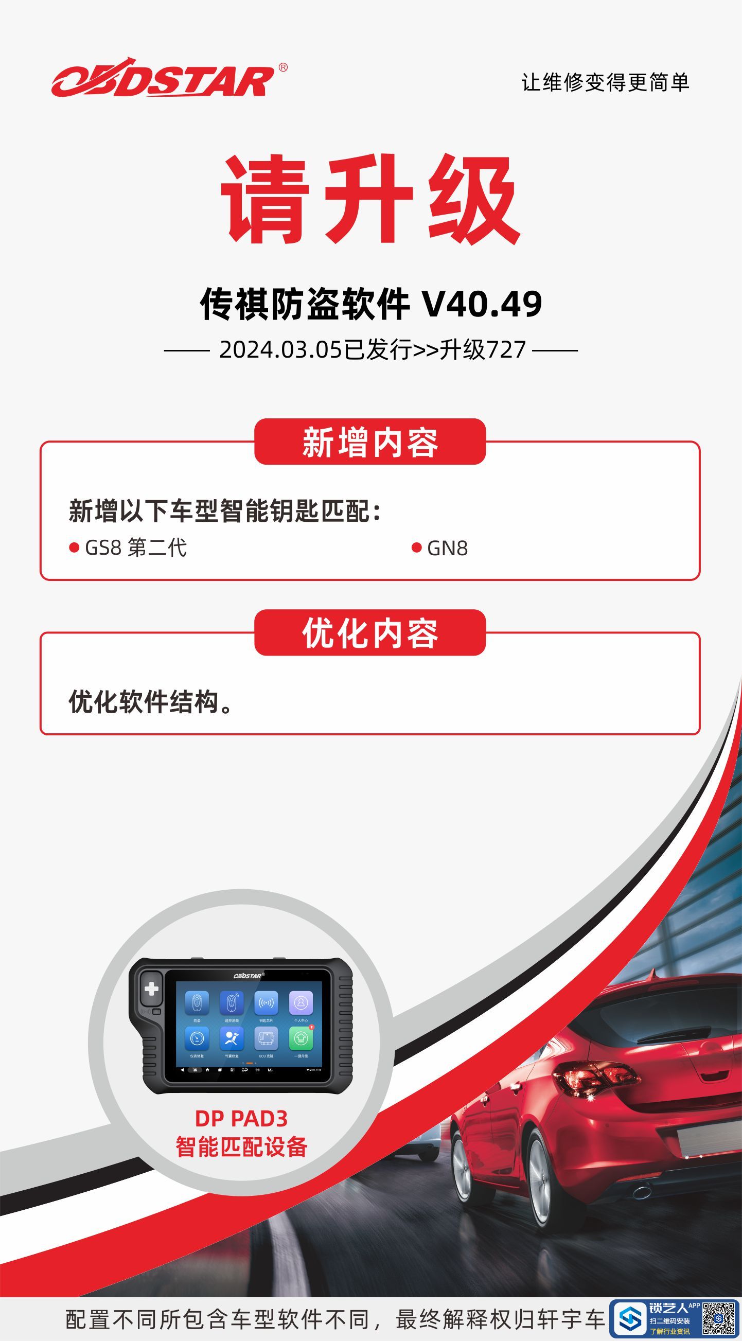 [设备升级] DP PAD3:新增GS8第二代/GN8智能钥匙匹配