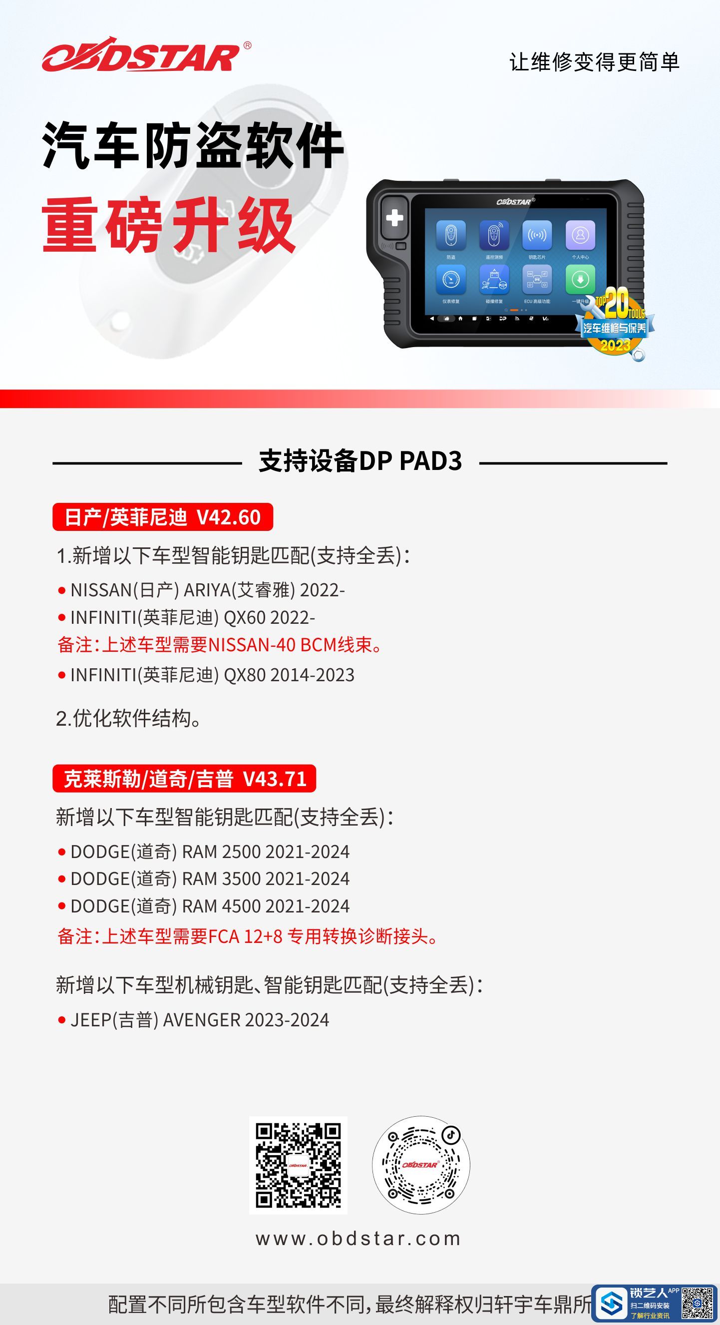 [设备升级] DPPAD3:日产/英菲尼迪、克莱斯勒/道奇/吉普车型升级公告