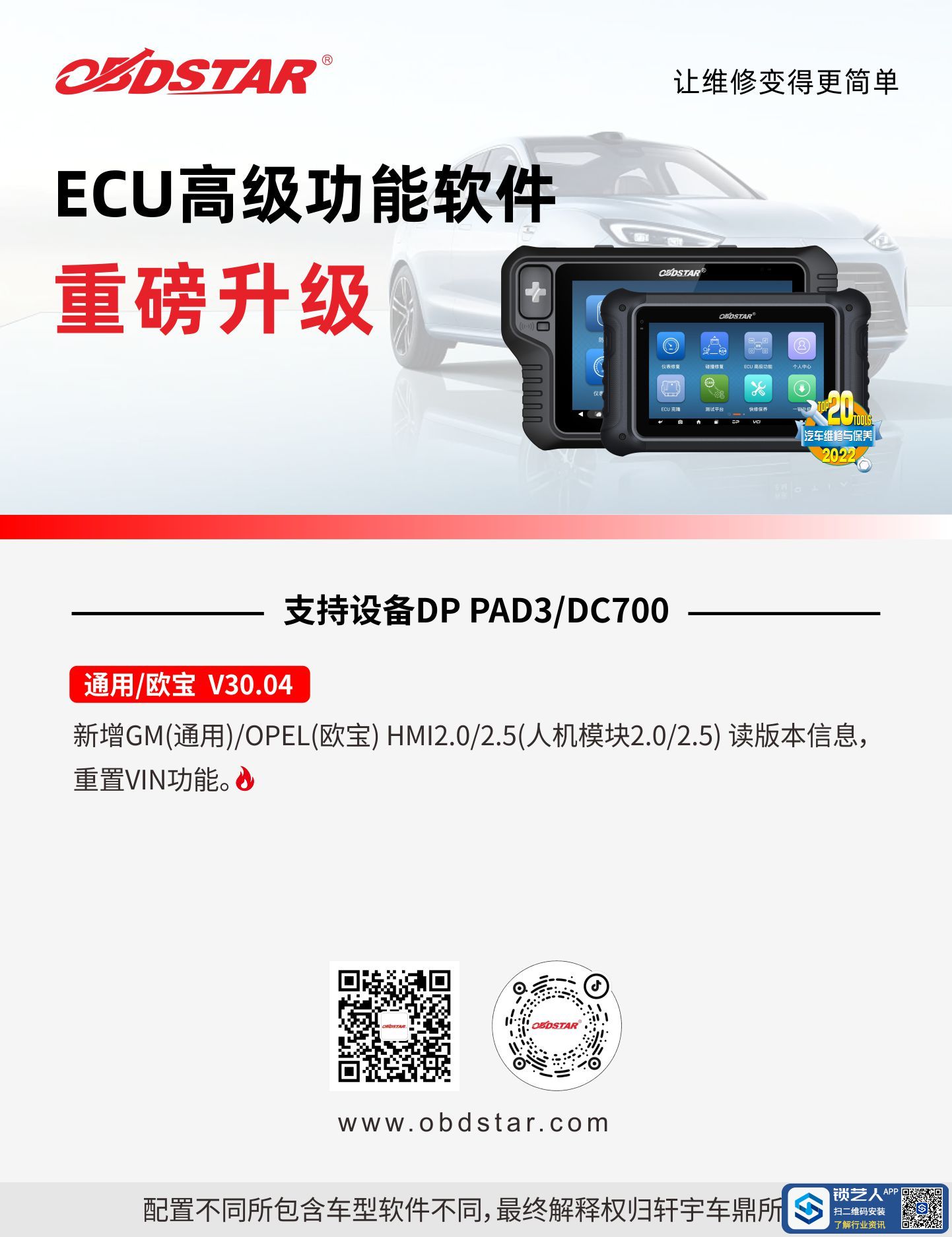 [设备升级] DP PAD3/DC700:新增通用/欧宝人机模块2.0/2.5重置VIN功能
