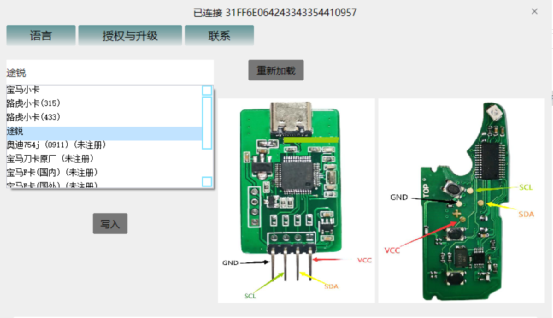此设备的大概流程就是:1:要将客户原始的钥匙ID读取出来,再用这个小设备把ID写入新的改装钥匙,2:使用芯片拷贝的设备,例如VVDI KEY TOOL KD X1 掌中宝之类的设备把此车辆的拷贝密码获取到(拷贝46芯片的过程中可以获取到)。3:然后再把拷贝密码写入到我们的新钥匙中(此操作需要区分高低钥密写入对应的选项)。