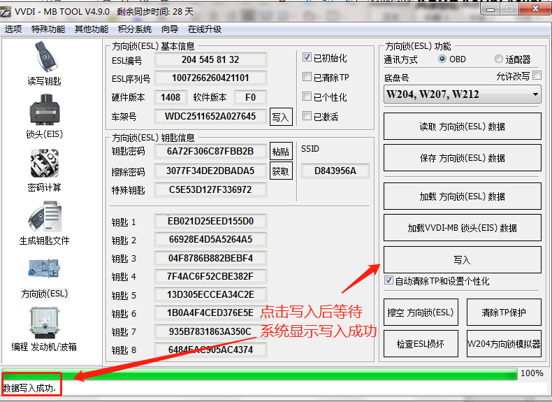 上述操作完成后,直接写入数据 数据写入成功后,插入原车钥匙即可激活。