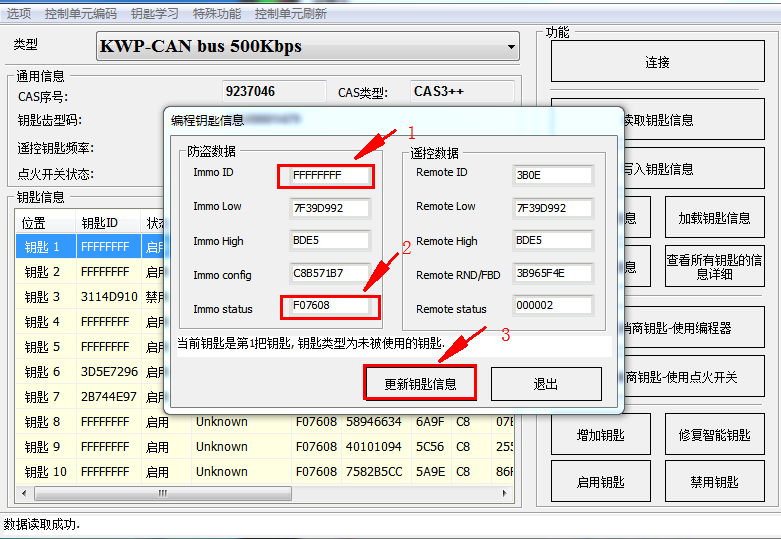 改好上述数据后,直接点击更新钥匙信息,那么这个位置就变成空白位置了,可以继续在此写钥匙。