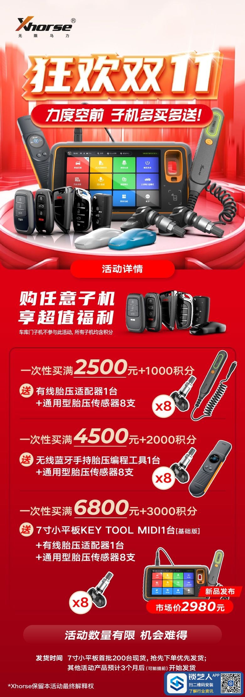 VVDI这个活动还是可以的,六千八那个最合适,买回来自己用也可以,卖了也可以,遥控器我买早了几天,双11当天结果出个这活动,我花了四千多买的子机气死了,不知道有活动,要是在等几天六千八那个多划算,