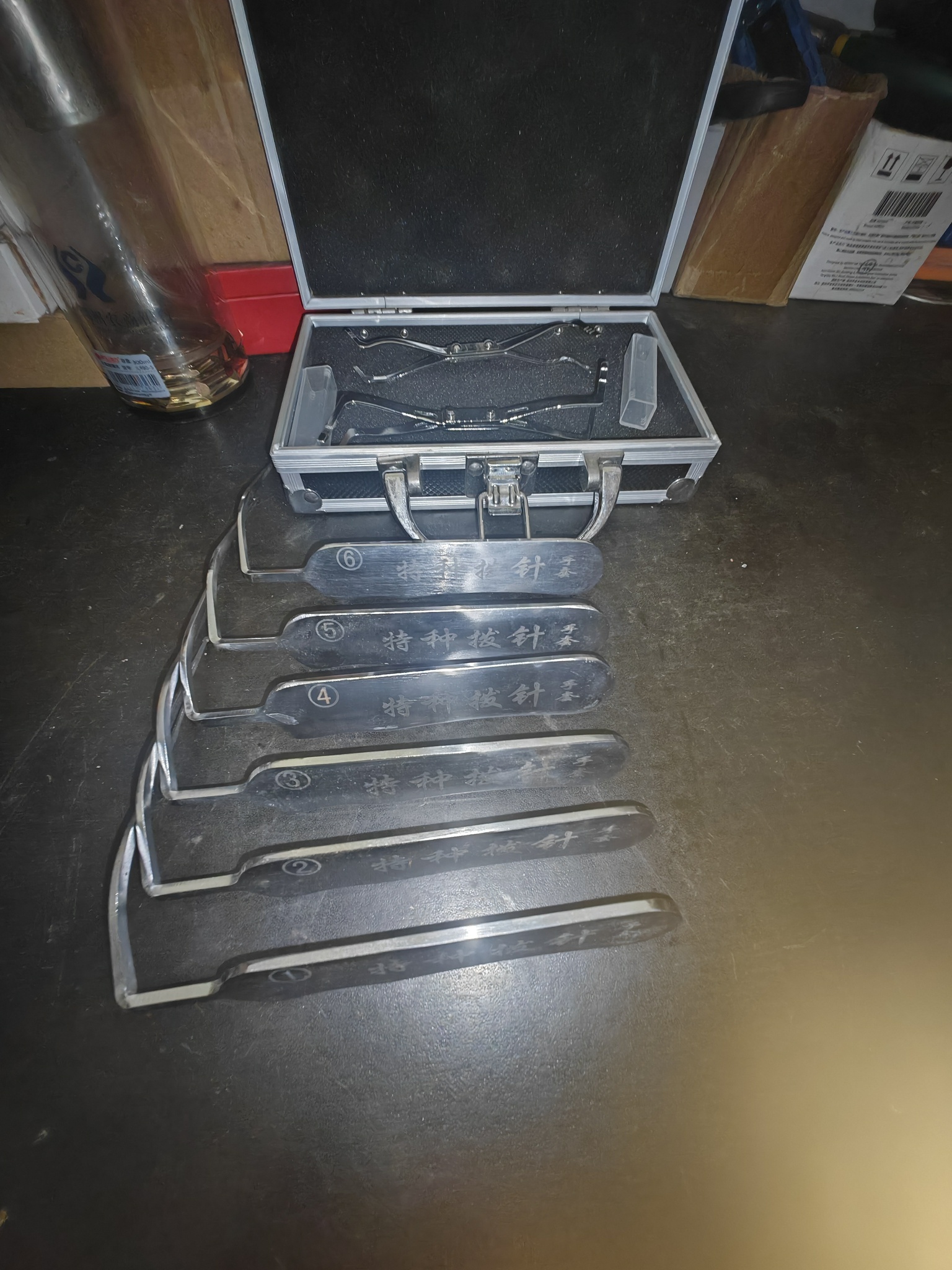 手套(带弧度)波针正品,波仔工具,不挡视线,新款,两个别子,一个提箱6个波针,售出不退,全新,手套正品,买来几乎没用,适合新手锁匠使用!500元入手,现在380元出手!
